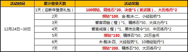2、七日活动在创角后弹出活动按钮,活动将在创建后第7天24点结束,请及时参与。