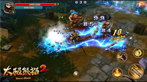作为一款动作手游,打击感绝对是最为重要的。《太极熊猫2》将3D物理引擎加入手游,它能够对动力与质量进行最真实的反馈,角色的每一个动作都是经过精心设计,只需简单的操作便可轻松实现一键连招,让打击感更具爆破性!战斗中,怪物被击飞的距离会受到攻击者的打击力度,怪物本身质量,以及地面的崎岖程度等多方因素影响。同时,还可根据打击力度,模拟出四分五裂、坠落悬崖等各种死亡效果。而火、冰、电、风等不同元素的加入,让怪物的死亡效果更加多变。