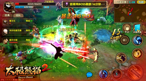 《太极熊猫2》在传统动作手游的基础上,拓展出了大世界玩法,野外团战自由PK,多人同屏实时交互,大大加强了ARPG手游里RPG的分量。玩家在广阔的野外有着丰富的玩法,如BOSS争夺,商队运镖,开红杀戮等等,多重玩法极其自由,激情澎湃的野外大型团战不是梦想!
