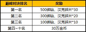 活动期间参与巅峰对决,并且在活动结束时巅峰对决排名前10名的玩家,可获得丰厚大奖,排名奖励如下: