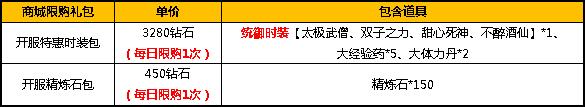 活动三:开服限时礼包,商城专柜抢购!