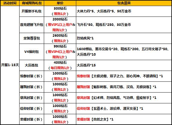 1、活动时间,礼包将在商城的限时商品柜面出售;