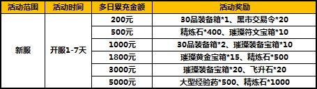 1、活动期间,多日累计充值达到对应金额即可领取对应奖励;