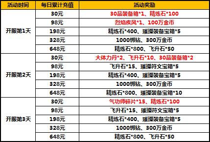 1、活动期间,每日累计充值满对应金额,即可领取相应奖励;