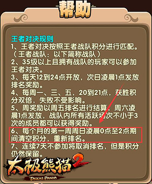 此外,王者对决规则第6条规定,每个月的第一周周日凌晨0点至2点期间清空积分,重新排名。