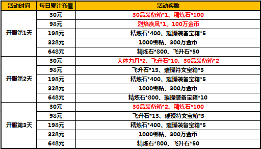1、活动期间,每日累计充值满对应金额,即可领取相应奖励;