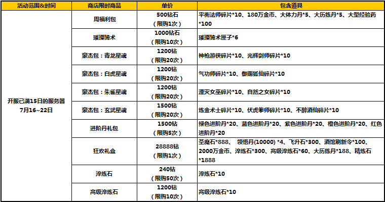 活动范围:开服已满15日的服务器
