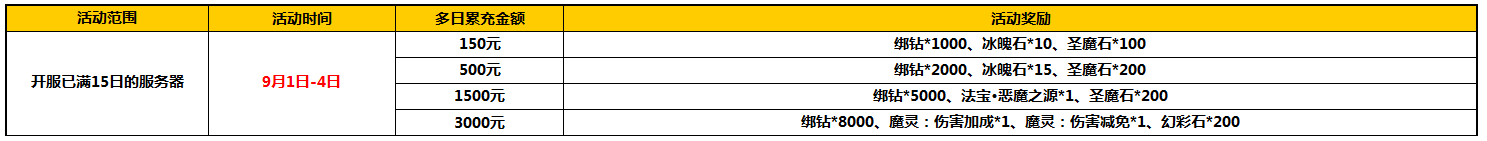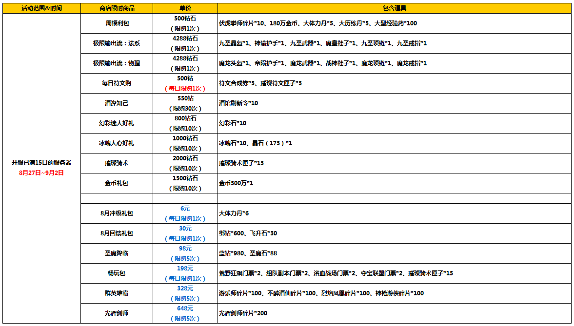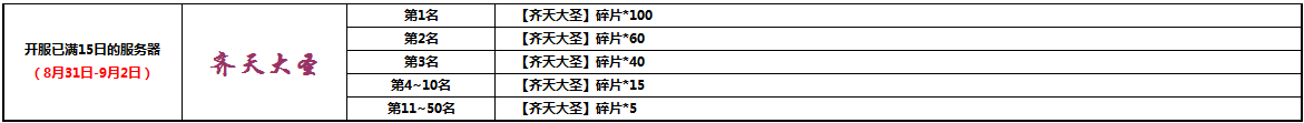 活动范围:开服已满15日的服务器
